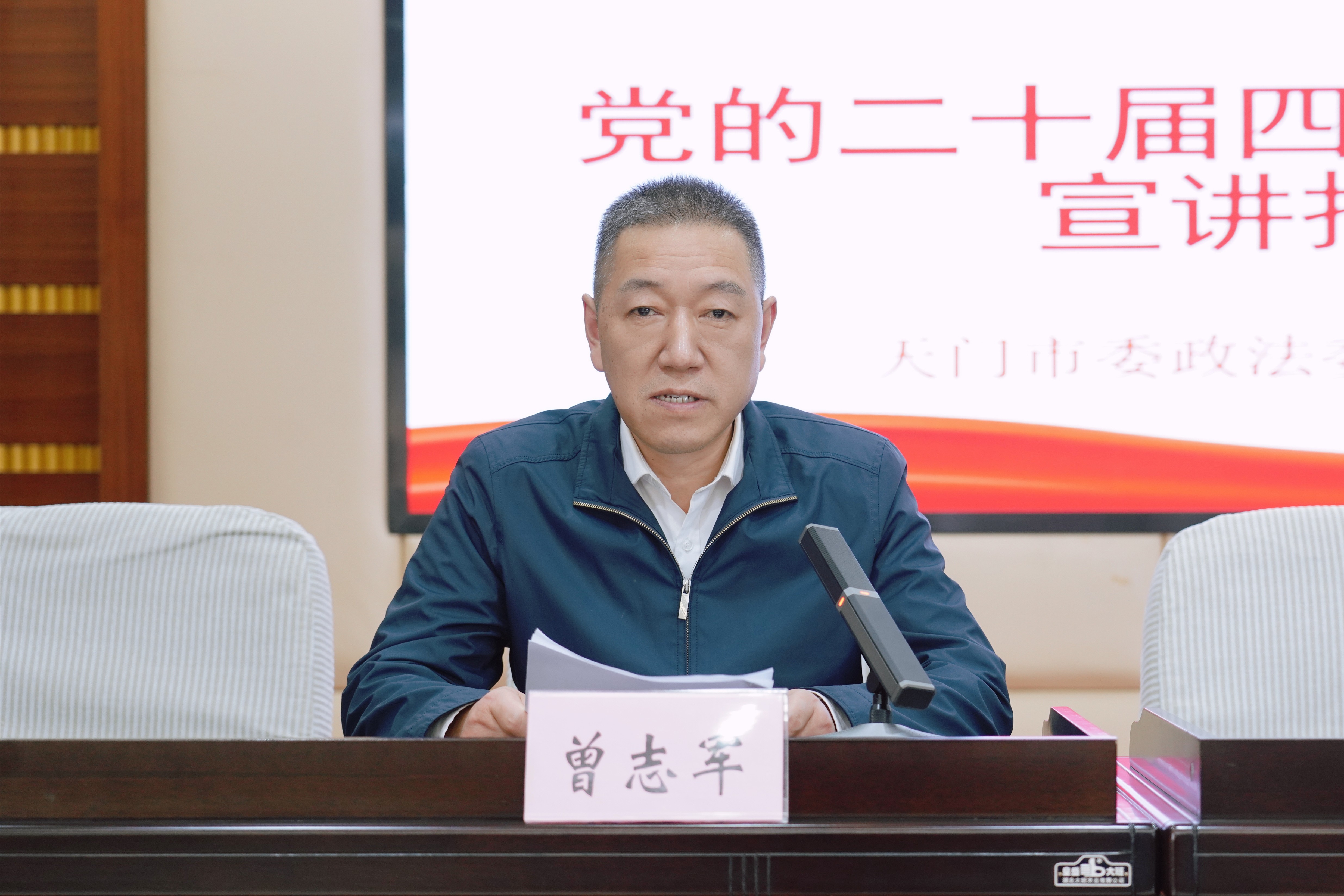 为学习贯彻好党的二十届四中全会精神,推动我院突出问题集中教育整治活动走深走实,12月10日下午,市检察院特邀市委宣讲团成员、市委政法委常务副书记雷大庆为全院干警作专题讲座。院党组书记、检察长曾志军主持会议,全体干警参会。